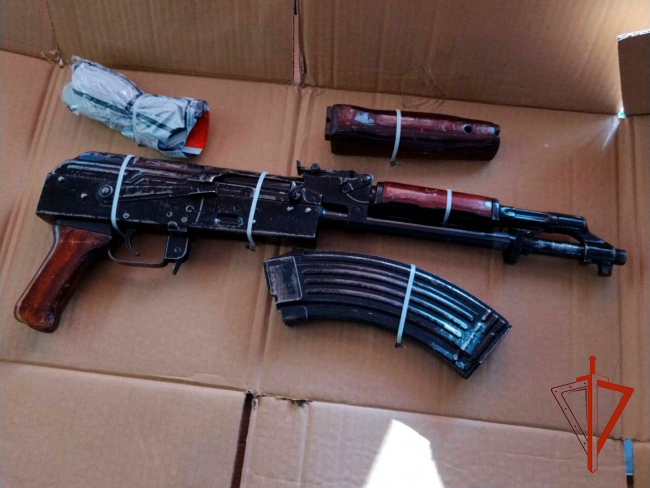 По адресам проживания злоумышленников были обнаружены мобильные телефоны, банковские карты, кредитная техника и иные предметы, имеющие доказательственное значение. Кроме того, был изъят и отправлен на экспертизу предмет, конструктивно схожий с автоматом, и патроны к нему, а также арбалет и вещество растительного происхождения, весом около 100 г.