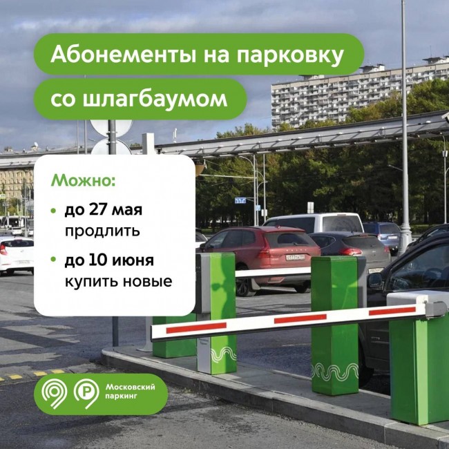 «По поручению Мэра Москвы Сергея Собянина мы развиваем парковочное пространство и делаем его удобнее для автомобилистов. Сегодня в Москве 48 абонементных парковок со шлагбаумом. Мы обустраиваем их по просьбам горожан — это гарантированное место для автомобиля около дома или рядом с работой. Не забывайте вовремя продлевать свои абонементы, поскольку все они могут уйти в продажу», — отметил Максим Ликсутов.