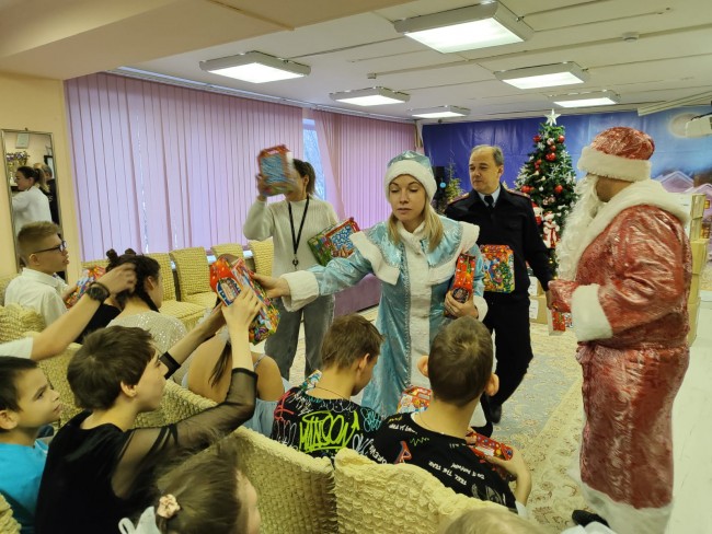 В рамках акции "Полицейский Дед Мороз" сотрудники линподразделения во главе с врио начальника подполковником полиции Юрием Алдошкиным навестили ребят Центра содействия семейному воспитанию "Доверие". Транспортные полицейские поздравили ребят с Наступающим Новым годом, организовали театральное представление и подарили подарки.