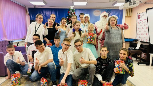 Сотрудники полиции не оставили в стороне и ребят, имеющих особенности в развитии. Воспитанникам Центра Сколково транспортные полицейские также вручили новогодние подарки.