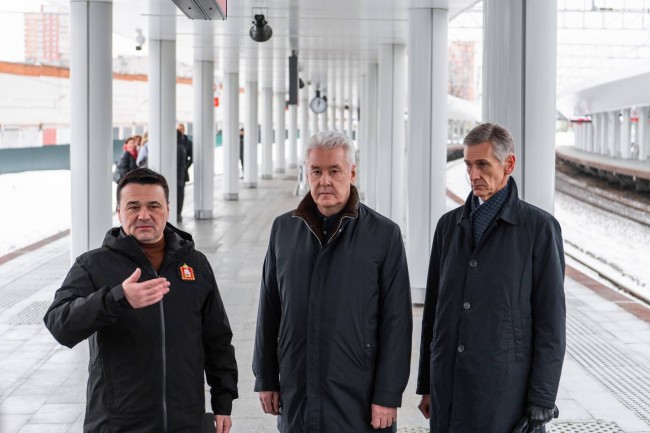 Мэр Москвы Сергей Собянин, губернатор Московской области Андрей Воробьев и заместитель генерального директора ОАО «РЖД» Олег Тони открыли после реконструкции пригородный вокзал «Лесной Городок» будущего МЦД-4.