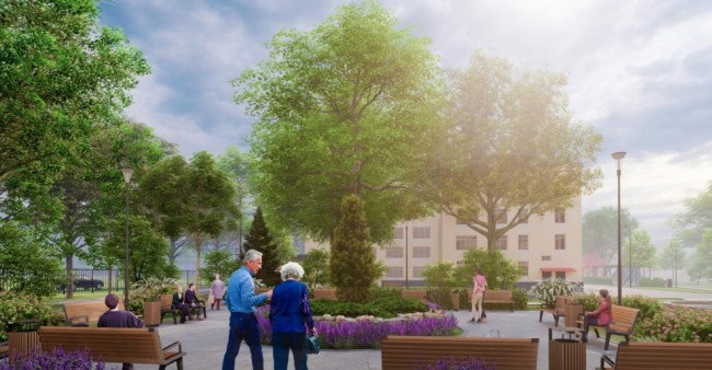 В городской клинической больнице имени Ерамишанцева установят скамейки, навесы и скульптурные композиции в зоне отдыха перед главным корпусом и на площадке торжественных встреч у роддома, организуют спорплощадку для сотрудников.