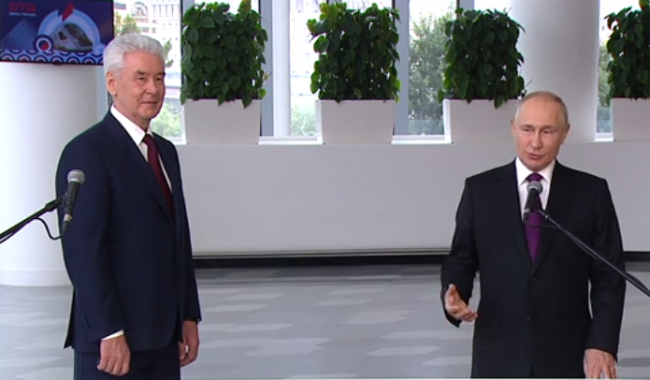 Российский лидер Владимир Путин и Сергей Собянин запустили движение по Южному направлению Московского скоростного диаметра (МСД). Этот участок МСД улучшил транспортную доступность 22 районов Москвы, где живут 2,5 млн человек.