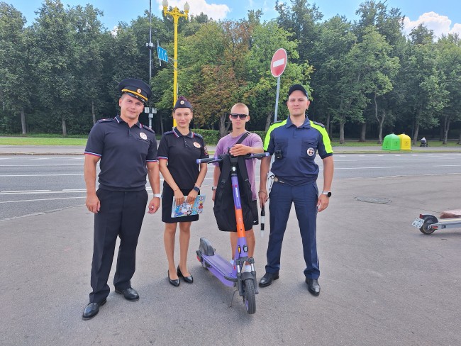 Сотрудники ГИБДД рассказали о состоянии дорожно-транспортного травматизма на дорогах Западного округа столицы, привели примеры дорожно-транспортных происшествий с лицами, передвигающимися на СИМ, обратив особое внимание на необходимость спешиваться при переходе дороги по пешеходному переходу, не нарушать требования сигналов светофора, быть особо внимательными в дворовой территории и обязательно использовать защитную экипировку и светоотражающие элементы. По окончанию беседы пользователям СИМ вручались памятки с основными Правилами дорожного движения для СИМ, а детям красивые раскраски.