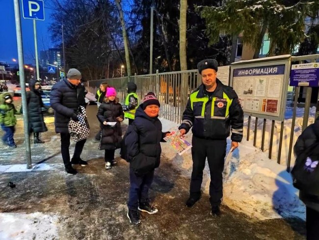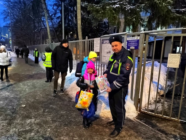 7 февраля 2024 года сотрудники Отдела Госавтоинспекции Западного округа г. Москвы приняли участие в акции «Родительский патруль». При подходе к ГБОУ г. Москвы «Школе №1541» инспекторы ГИБДД совместно с детьми из отряда ЮИД, представителями родительской общественности и преподавателями школы проводили профилактические беседы с детьми и родителями, в которых напоминали им о правильном переходе проезжей части и о важности присутствия светоотражающих элементов на одежде ребёнка и взрослого. Детям вручались красочные буклеты по Правилам дорожного движения, а родителям листовки с призывом соблюдать ПДД.