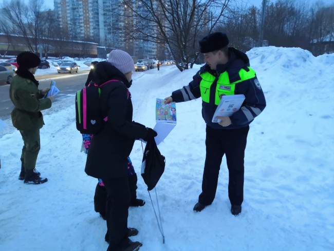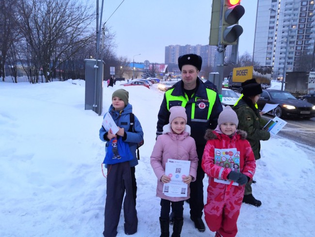 16 февраля 2024 года сотрудники Отдела Госавтоинспекции Западного округа г. Москвы приняли участие в акции «Родительский патруль». При подходе к ГБОУ г. Москвы «Школе №1238» инспекторы ГИБДД совместно с детьми из отряда ЮИД, представителями родительской общественности и преподавателями школы проводили профилактические беседы с детьми и родителями, в которых напоминали им о правильном переходе проезжей части и о важности присутствия светоотражающих элементов на одежде ребёнка и взрослого. Детям вручались красочные буклеты по Правилам дорожного движения, а родителям листовки с призывом соблюдать ПДД.