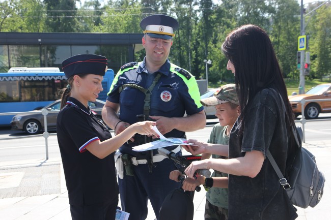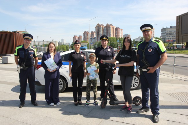 В преддверии «Дня защиты детей» инспекторы группы по пропаганде Отдела ГИБДД Западного округа столицы майор полиции Виноградов Роман Владимирович и младший лейтенант полиции Грацкая Анна Валерьевна совместно с членом Общественного совета при УВД по ЗАО г. Москвы Мгебришвили Марьян Георгиевной напомнили участникам дорожного движения о правилах безопасности для лиц, управляющих средствами индивидуальной мобильности (СИМ).