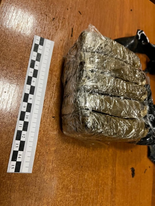 В ходе личного досмотра в присутствии понятых у подозреваемого в рюкзаке обнаружен предмет прямоугольной формы, внутри которого находилось 5 брикетов в полиэтиленовых пакетах с веществом темно-зеленого цвета.