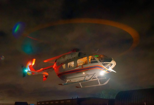 «Для различных ночных авиационных работ на вертолётах дополнительно может использоваться и поисково-спасательный прожектор. Управление ведётся из кабины экипажа, что позволяет направлять луч света туда, где он необходим. Для работы с прожектором каждый пилот получает специальный допуск. Светящиеся полосы прожектора в основном можно наблюдать за городом и над лесопарковыми зонами столицы», – дополнил Алексей Диденко.