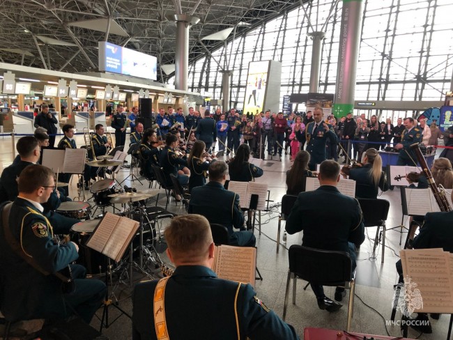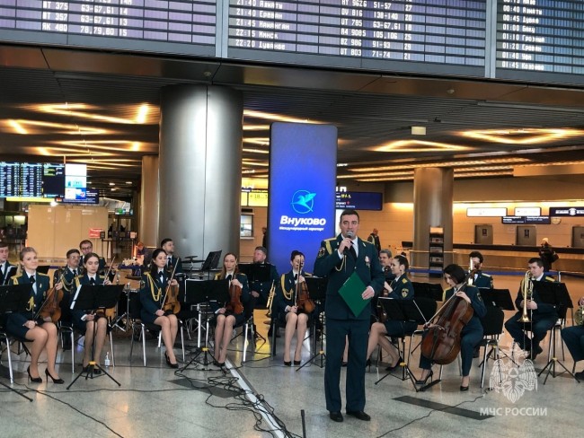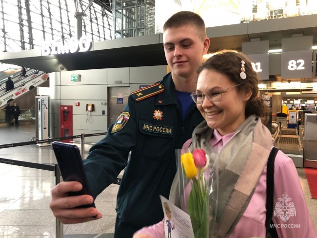В преддверии Международного женского дня сотрудники МЧС России организовали живой концерт на территории столичного аэропорта "Внуково". Акция прошла в терминале А при поддержке Национального центра помощи пропавшим и пострадавшим детям. Показательный оркестр МЧС России и творческие коллективы Академии Государственной противопожарной службы МЧС России исполнили для прекрасных дам ряд музыкальных композиций, любимых с детства и воспевающих женскую красоту и любовь к жизни. Под музыку курсанты АГПС МЧС России раздали пассажиркам и гостьям аэропорта «Внуково» букеты тюльпанов, а волонтеры Наццентра - детям памятки по безопасности, сладкие подарки. Праздничный комплимент тронул сердца всех, кто стал участником мероприятия.