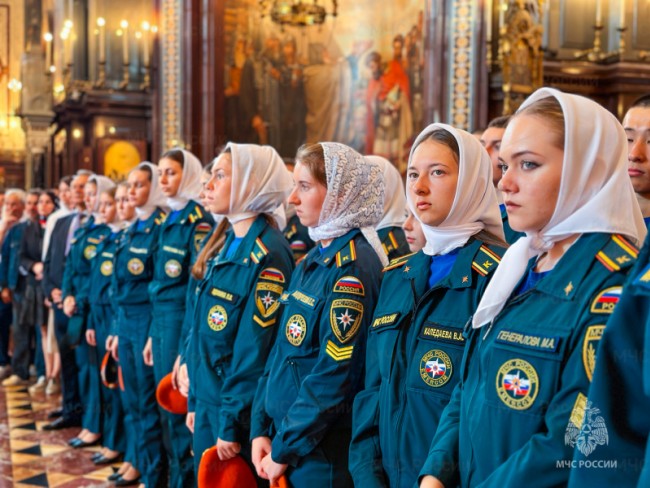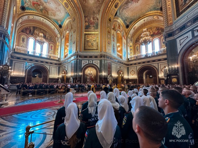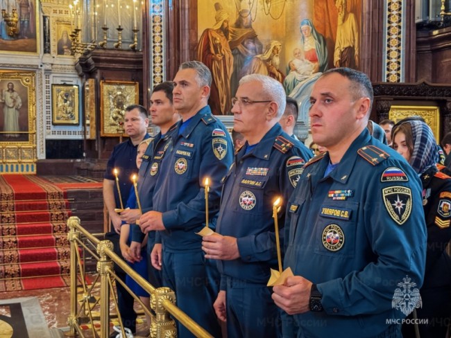 В традиционном молебне приняли участие руководящий состав центрального аппарата МЧС России, пожарные и спасатели, курсанты учебных заведений ведомства, а также члены семей сотрудников. Всего порядка двух тысяч представителей МЧС России.