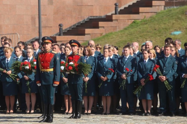 «Сегодня мы собрались здесь, чтобы почтить память павших. Всех тех, кто отдал жизнь за нашу Родину, тех, кто защищал мирное небо. Для того чтобы мы с вами спокойно ходили по нашей земле, дышали, растили детей, внуков. Объявляется минута молчания», – сказала руководитель управления Федеральной налоговой службы (УФНС) России по Москве Марина Третьякова.