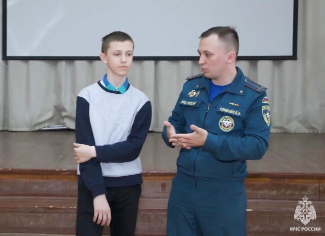 На многих уроках теоретические знания подкрепляются практикой: школьники под чутким руководством сотрудников МЧС отрабатывают приемы эвакуации из задымленного помещения, вызов пожарных подразделений к месту возгорания.