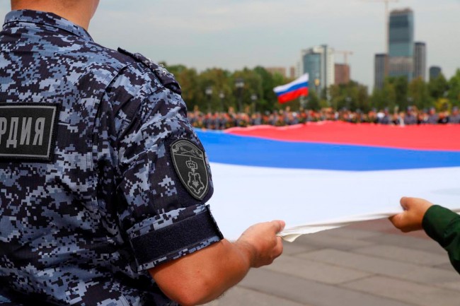 Сотрудники вневедомственной охраны Главного управления Росгвардии по г. Москве приняли участие в масштабной патриотической акции, посвященной 30-летию Государственного флага Российской Федерации.