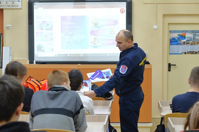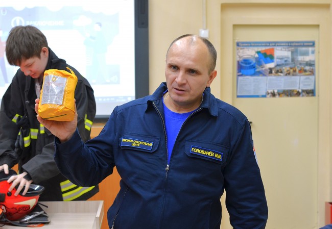 Михаил Головачёв напомнил школьникам и об опасности выхода на лед замерзающих водоемов, рассказал, как правильно использовать средства индивидуальной защиты, оказывать первую помощь пострадавшим и напомнил телефоны вызова экстренных служб.