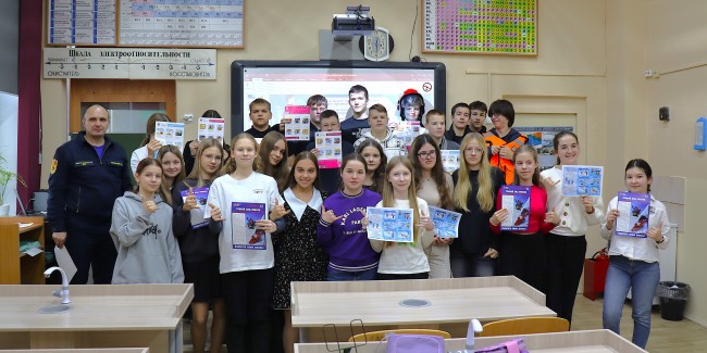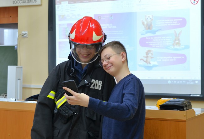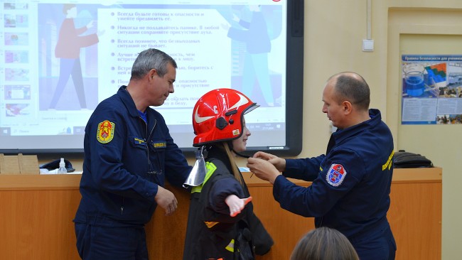 Дети с интересом примеряли боевую одежду и каску пожарного, делали селфи и обязательное общее фото на память. После занятия работники Пожарно-спасательного центра пригласили школьников на экскурсию в свой отряд и вручили им памятки о правилах поведения во время происшествий.