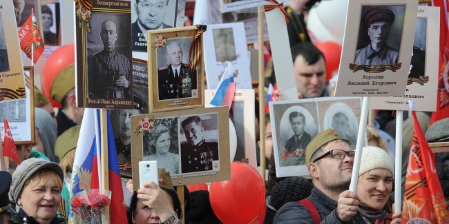В Москве 9 мая в 15:00 начнется акция «Бессмертный полк». С портретами участников Великой Отечественной войны жители столицы пройдут по Ленинградскому проспекту, улицам Тверской и 1-й Тверской-Ямской через Охотный Ряд, Манежную и Красную площади. Длина маршрута составит 7 километров.