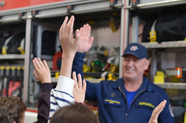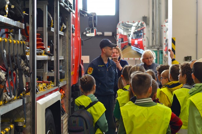 Маленьких посетителей встречает у ворот гаража начальник отряда Денис Смутин и дежурная смена. В гараже детям демонстрируют аварийно-спасательное оборудование и снаряжение, находящееся в пожарных машинах, поясняют, для чего и как оно применяется. Школьники узнают, какие средства пожаротушения используются для ликвидации возгорания, а с помощью каких инструментов проводятся аварийно-спасательные работы. Во время экскурсии огнеборцы объясняют, как важно своевременно обратиться в пожарную охрану за помощью, примерами из собственной практики иллюстрируют серьезность опасности небрежного обращения с электроприборами, газовыми плитами и источниками огня.