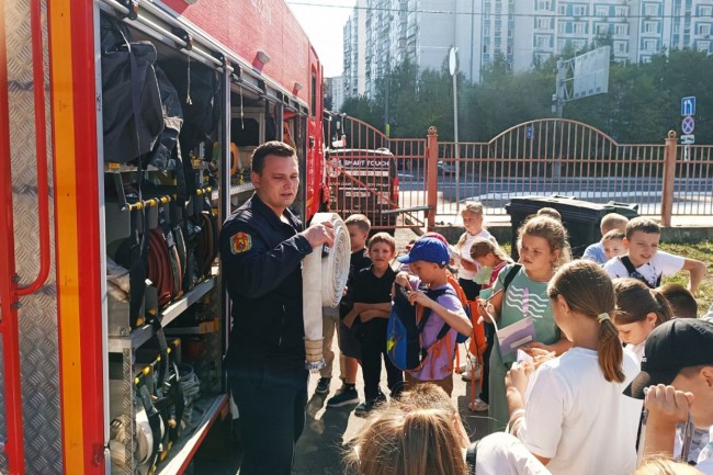 С начала сентября работники пожарно-спасательного отряда № 205, базирующегося в Западном округе столицы, провели девять экскурсий и 15 уроков для школьников округа.