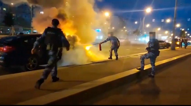 Столичные росгвардейцы пришли на помощь водителю загоревшегося автомобиля на Рублевском шоссе