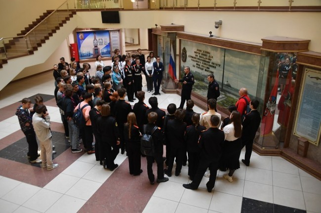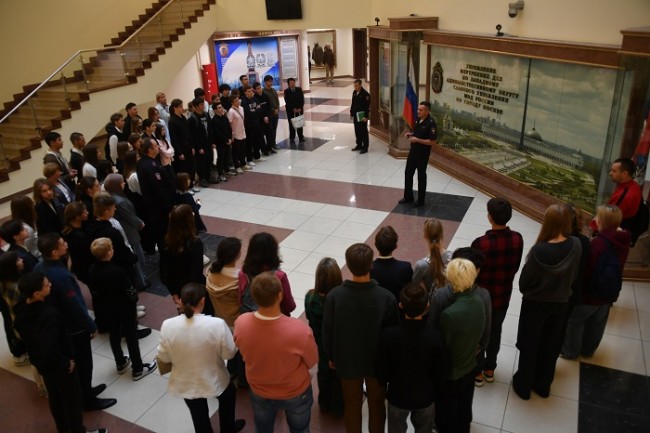 В завершение познавательной и увлекательной экскурсии в актовом зале Управления с гостями встретился начальник УВД по ЗАО ГУ МВД России по городу Москве генерал-майор полиции Алексей Зеленцов. В живой и непринужденной обстановке Алексей Глебович расспросил подростков об их жизненных планах, о возможных вариантах поступления в различные учебные заведения, отметив определенные и несомненные плюсы учебы в профильном учебном заведении – Университете МВД России имени В. Я. Кикотя. В этот день всем желающим были подготовлены буклеты со справочной информацией о прохождении службы в органах внутренних дел, а также приглашения трудоустройства после окончания ВУЗа.