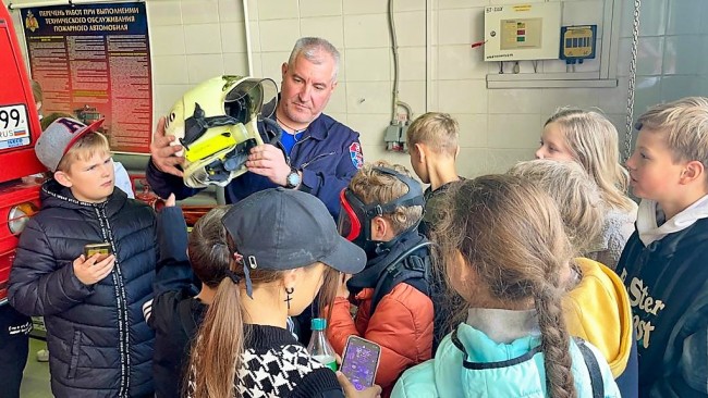 Ни одна экскурсия не обходится без профилактической беседы: ребятам напоминают о соблюдении правил пожарной безопасности, правильном алгоритме вызова экстренных служб и об ответственности за совершение ложного вызова.