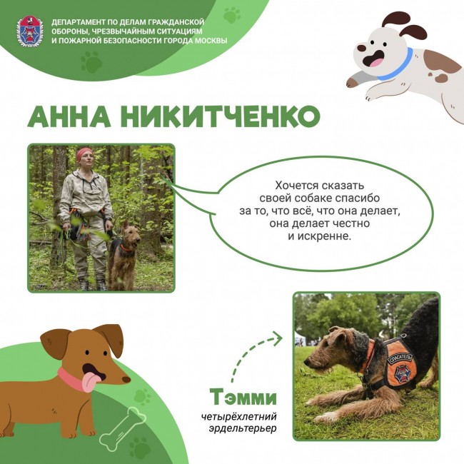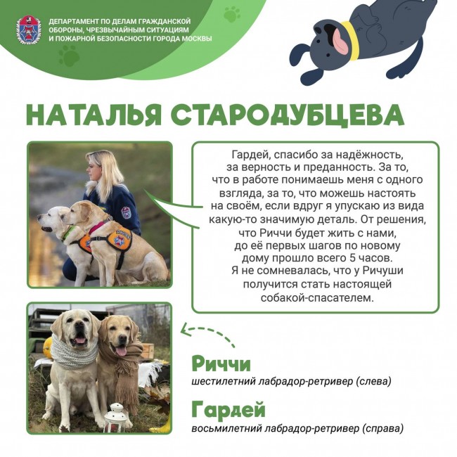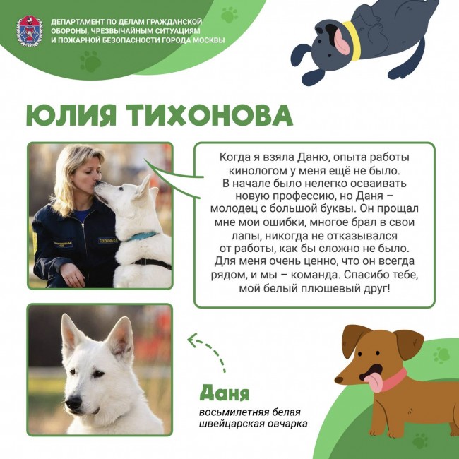 Сегодня кинологи столичного Пожарно-спасательного центра рассказывают о своих питомцах и говорят им «спасибо» в наших карточках.