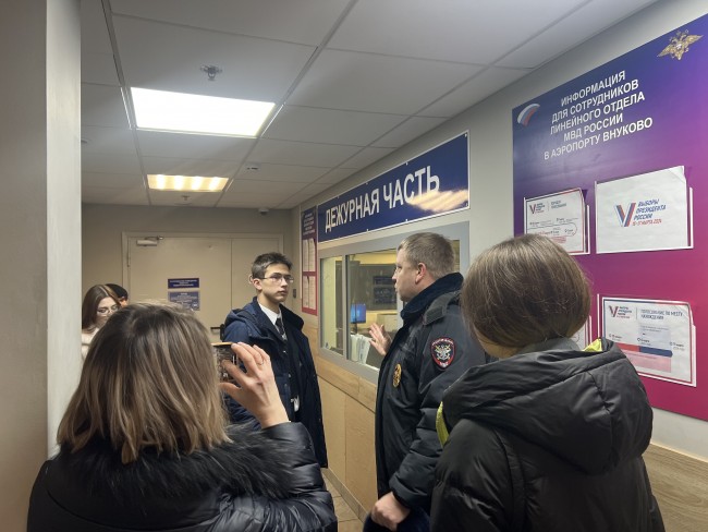 В рамках акции «Студенческий десант», приуроченной ко Дню российского студенчества, сотрудники ЛО МВД России в аэропорту Внуково приняли студентов колледжа Всероссийского государственного университета юстиции (РПА Минюста России).