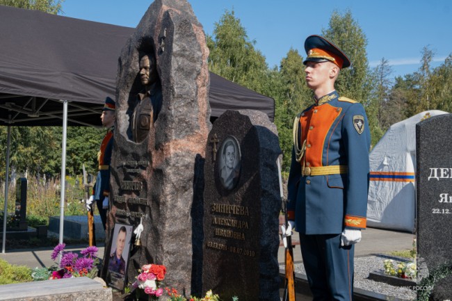 Сотрудники Главного управления МЧС России по Тюменской области собрались у мемориала пожарным и спасателям, погибшим при исполнении служебного долга. Они почтили минутой молчания Евгения Зиничева, возложили цветы к памятнику. В часовне в честь иконы Божьей Матери «Неопалимая Купина» состоялся молебен о сотрудниках ведомства, погибших при исполнении служебного долга.