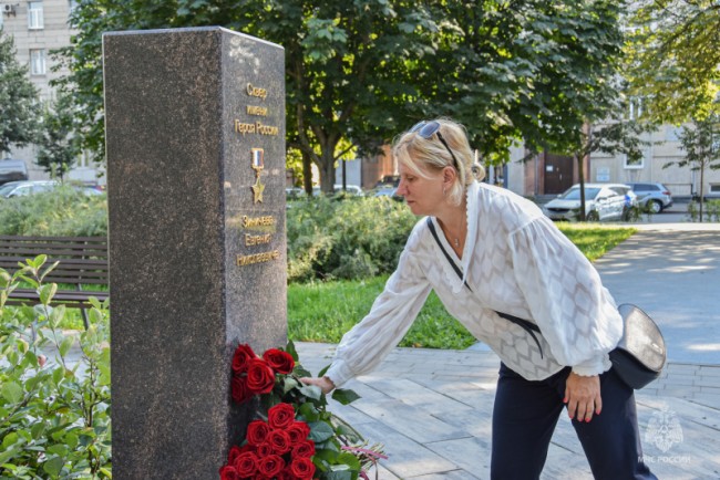 В Центре по проведению спасательных операций особого риска «Лидер» на «Аллее Героев» установлен портрет Евгения Зиничева. Отдавая дань памяти и уважения, военнослужащие Центра возложили к нему цветы и почтили память Героя России минутой молчания.