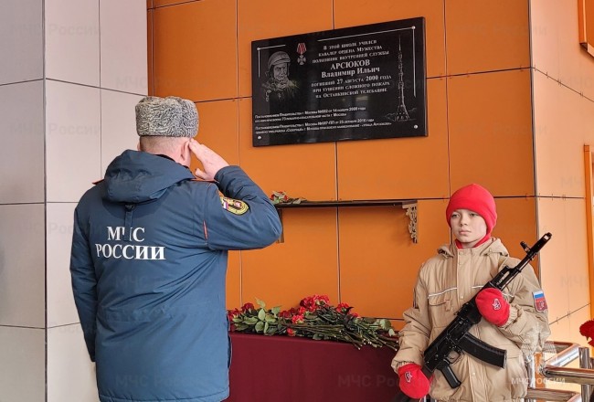 В начале мероприятия руководство и сотрудники столичного главка МЧС России, родственники, сослуживцы, а также воспитанники кадетского корпуса школы возложили цветы к мемориальной доске В.И. Арсюкова. После чего в актовом зале состоялась официальная часть встречи.