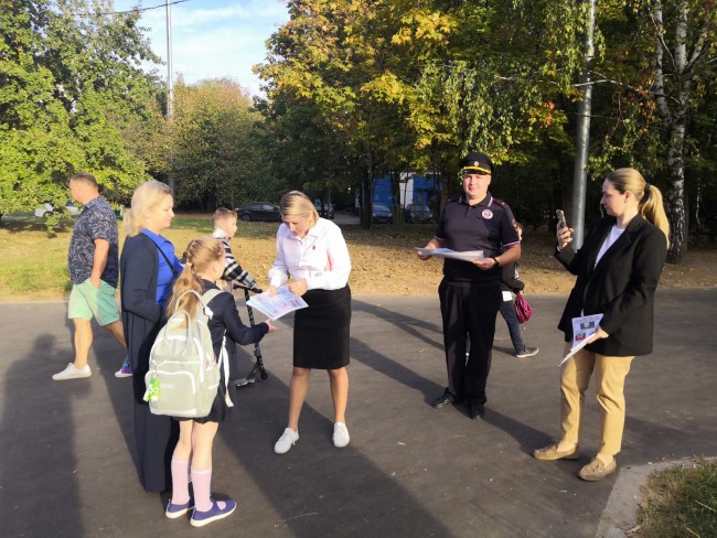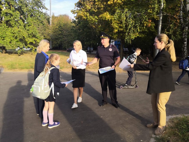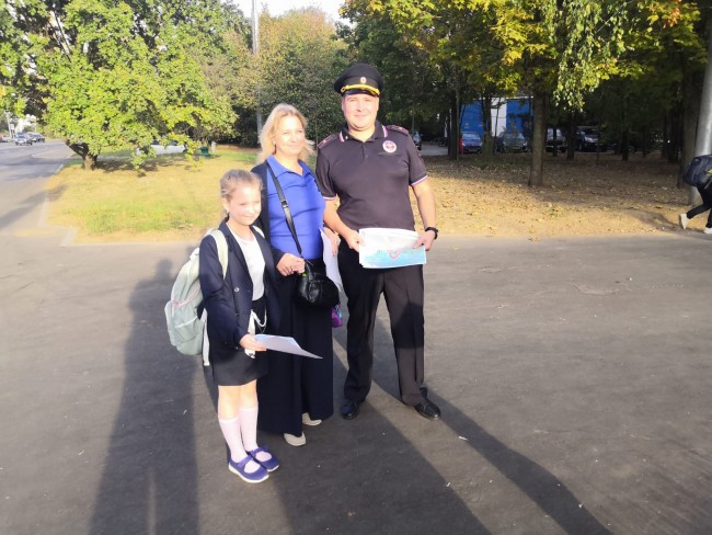 19 сентября 2024 года сотрудники Отдела Госавтоинспекции Западного округа г. Москвы приняли участие в акции «Родительский патруль». При подходе к ГБОУ г. Москвы «Школе №1238» инспекторы ГИБДД совместно с детьми из отряда ЮИД, представителями родительской общественности и преподавателями школы проводили профилактические беседы с детьми и родителями, в которых напоминали им о правильном переходе проезжей части и о важности присутствия светоотражающих элементов на одежде ребёнка и взрослого. Детям вручались красочные буклеты по Правилам дорожного движения, а родителям листовки с призывом соблюдать ПДД.
