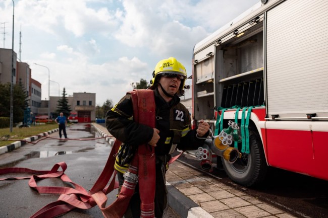 Три соревновательных дня и две спортивные площадки: в столичном Пожарно-спасательном центре прошел отборочный этап соревнований по боевому развертыванию. Условия не первый год остаются неизменными. Перед командами стоит задача как можно быстрее выполнить упражнения по надеванию боевой одежды пожарного, установке автоцистерны на открытый водоисточник, прокладке магистральной линии, подъему в окна учебной башни с помощью выдвижной трехколенной и штурмовой лестниц. Секундомеры судей останавливаются в тот момент, когда из окон 3-го и 4-го этажей учебной башни появляется вода. Как правило, с этой задачей команды справляются всего за несколько минут.