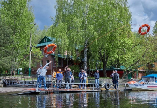 Самая интересная и важная часть курса – практические занятия. Они прошли на поисково-спасательной станции «Озеро Бездонное» Московской городской поисково-спасательной службы на водных объектах. Слушателей ознакомили с процессом работы дежурной смены, оснащением станции, затем группа отработала приёмы спасения на воде и навыки по управлению гребной лодкой.
