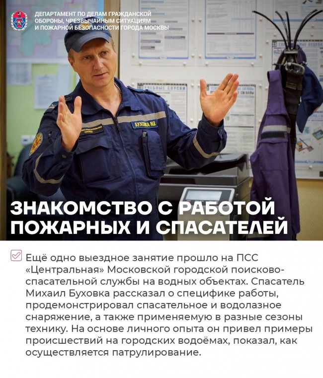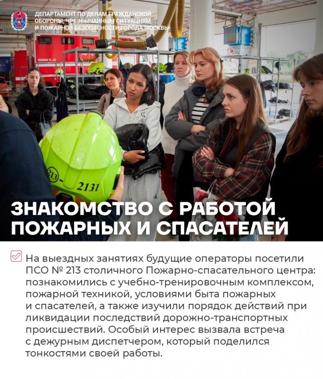 Программа обучения предусматривает не только лекционный материал, но и обязательные практические тренинги по оказанию первой помощи, а также выездные занятия в подведомственные учреждения столичного Департамента по делам гражданской обороны, чрезвычайным ситуациям и пожарной безопасности. Завершается курс стажировкой в дежурных сменах Службы 112 Москвы.