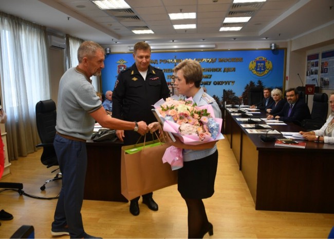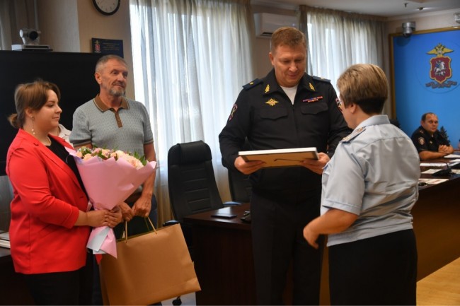 В начале мероприятия начальник УВД по ЗАО ГУ МВД России по г. Москве генерал-майор полиции Алексей Зеленцов вручил благодарность, ценный подарок и цветы начальнику Отдела участковых уполномоченных полиции и по делам несовершеннолетних ОМВД России по району Очаково-Матвеевское г. Москвы подполковнику полиции Наталье Федоткиной. Она проявила мужественность, решительность и находчивость в экстремальной ситуации и оказала первую помощь тяжело раненному в ДТП ребенку, не дав потерять ему много крови и сохранив мальчику жизнь.