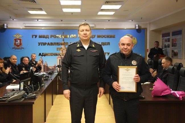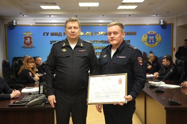 В УВД по ЗАО выразили благодарности отличившимся сотрудникам полиции и гражданскому лицу
