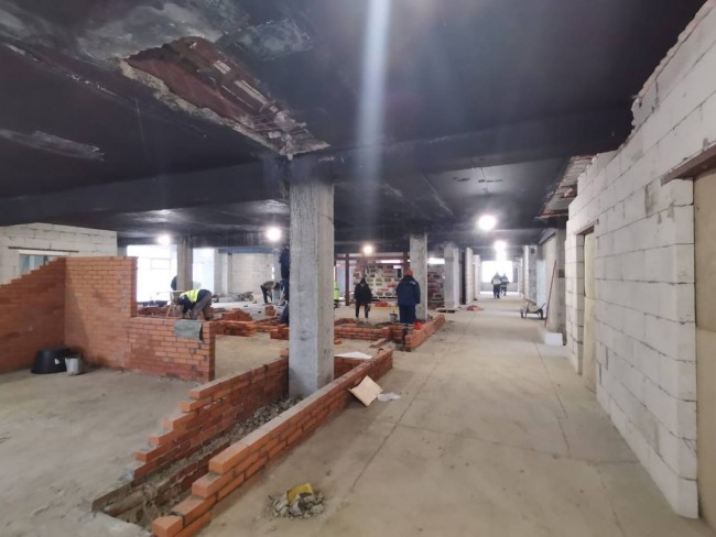 Так, в настоящее время на объекте осуществляется устройство перегородок на этажах и в подвале, монтаж оконных блоков, стояков отопления и утеплителя здания.