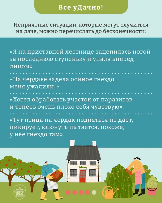 Но, хоть дачи и находятся за городом, нередко в Службу 112 Москвы обращаются дачники, для которых отдых обернулся неприятностями, или и вовсе в их отсутствие что-то пошло не так...