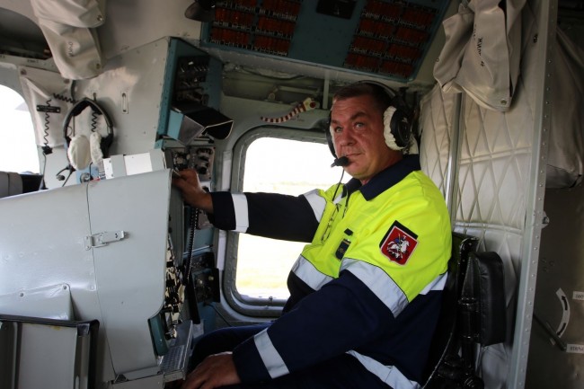Сегодня авиапарк Московского авиацентра включает в себя пожарные и санитарные вертолеты. Александр Гришняев вместе с коллегами работает на пожарных Ка-32А и Ка-32А11ВС, а также самом большом в мире вертолете Ми-26.