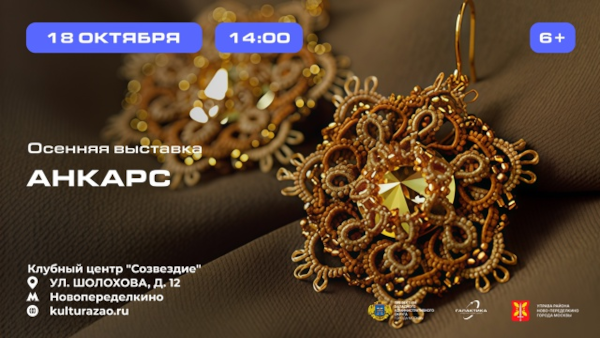 В рамках цикла «Встречи мастеров» в клубе «Встреча» 18 октября будет организована выставка «АНКАРС - осень 2025», которая проводится ежегодно. Об этом сообщили в управе Ново-Переделкина.