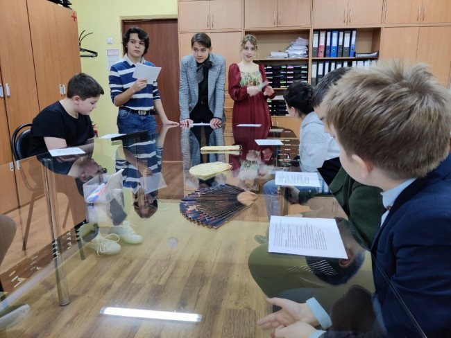 В роли экскурсоводов выступили активисты-девятиклассники, которые рассказали своим соученикам об эспонатах.