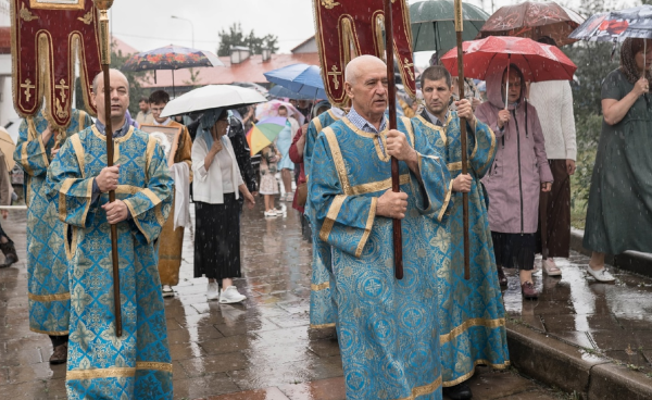 После божественной литургии состоялся традиционный крестный ход, который сопровождал колокольный звон. Шел дождь, но он не помешал собравшимся совершить молитвенное шествие с образом Казанской Богоматери.