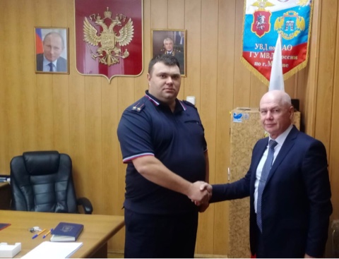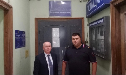 В рамках акции «Гражданский мониторинг» заместитель председателя Общественного совета при УВД по ЗАО ГУ МВД России по г. Москве Александр Терентьев ознакомился с деятельностью отделения полиции по обслуживанию МГУ УВД по ЗАО. Встретил общественника начальник отделения полиции по обслуживанию МГУ УВД по ЗАО ГУ МВД России по г. Москве подполковник полиции Евгений Зайцев.