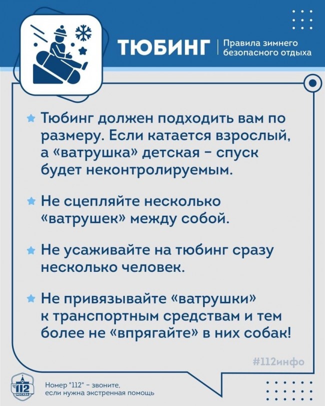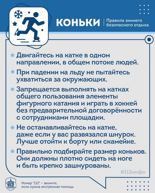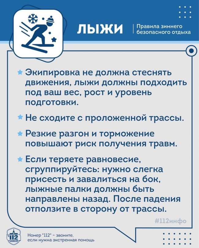 Подробные правила безопасного катания на лыжах, тюбингах и коньках вас ждут в карточках от Системы 112 Москвы.
